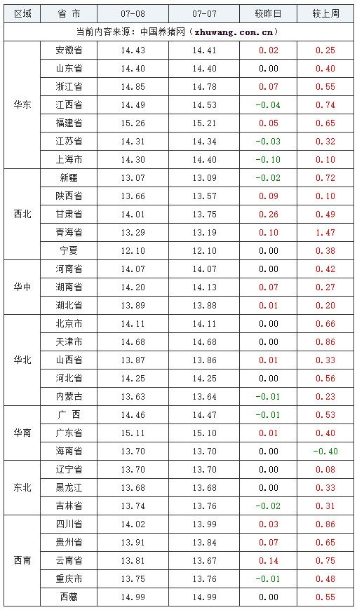 生猪(外三元)均价涨跌表”发现,国内外三元生猪价格较昨日依旧呈现小幅上涨行情,在全国可监测的31个省/市/自治区中,猪价走势为13涨10平8跌,以震荡趋稳为主。西北以及西南地区猪价以上涨居多,整体涨幅为0.01-0.26元/公斤,最低为广东省,最高为甘肃省。华东、华北地区猪价以下跌为主,整体跌幅为0.01-0.10元/公斤。与上周相比,猪价呈现回温走势,多地涨幅达到0.50元/公斤以上。市场生猪供应量充足,预计冻电子游艺平台