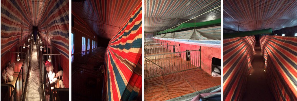 1、前端的猪舍进门口进行门帘挡风处理,门帘使用厚重的材料,且要大于门框,有利于防止贼风。
