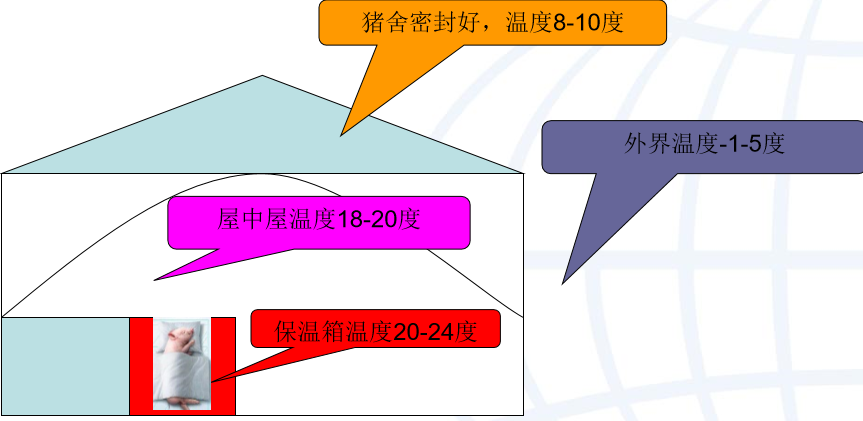 图5:猪舍密封+暖风炉+吊顶/假天花+保温箱(屋中屋)+保温灯
