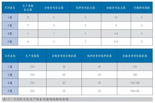 若使用批次化生产方式,那么就需要在母猪舍里提供额外的栏位用于调整生产。比如,在妊娠舍里需要准备好额外的栏位供后备母猪使用,以便及时更新老龄母猪或生产性能低的母猪。