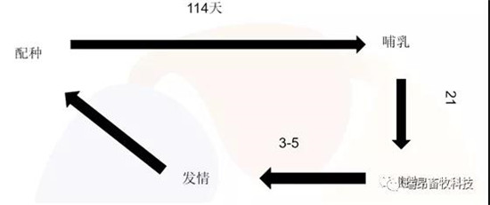 断奶到配种间隔为5天左右,妊娠期为114天,所以,母猪的繁殖周期(天)=114+5+21=140(天)。