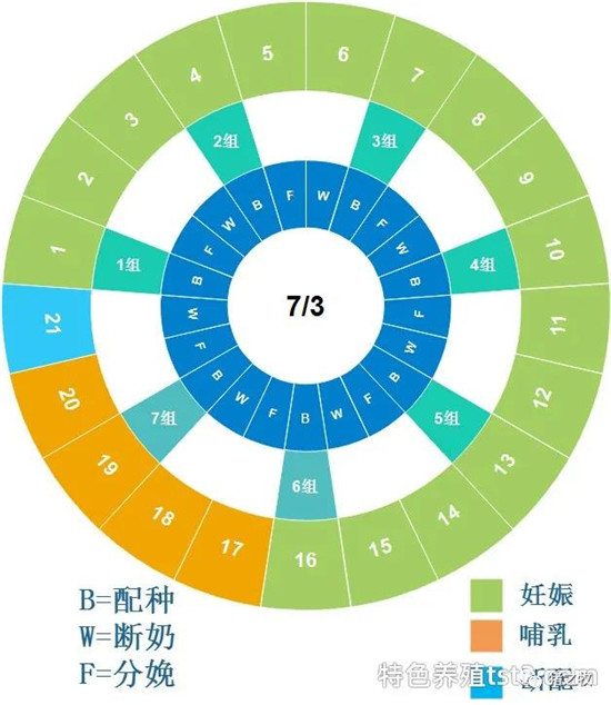 7、根据不同批次间隔时间和母猪哺乳时间可以将母猪群分为不同的批次生产管理小组: