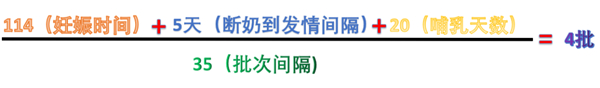 1、妊娠时间按114天计算,断奶到发情间隔时间为5天,哺乳天数为20天;
