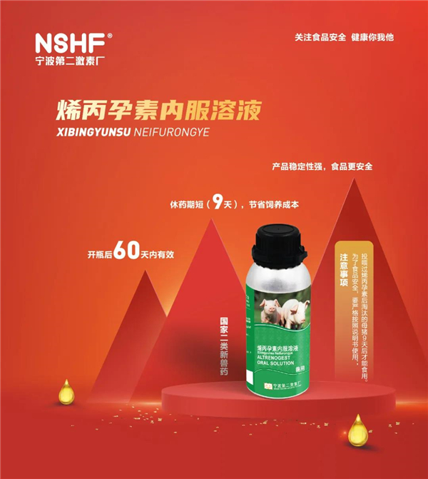 3、第三周周五断奶的母猪,周四开始在产房投喂烯丙孕素一次5ml,周五投喂一次断奶,断奶至配怀舍继续投喂烯丙孕素每天一次5ml,直到第四周周五为最后一次投药;