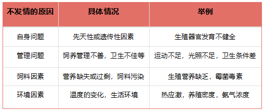 表1.不发情的原因及分类