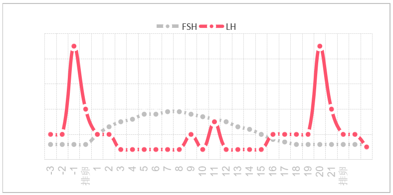 图1.FSH、LH激素水平和排卵关系图