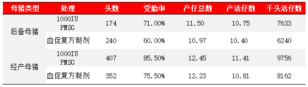 两种不同的诱情方法对母猪繁殖性能的影响详见下表: