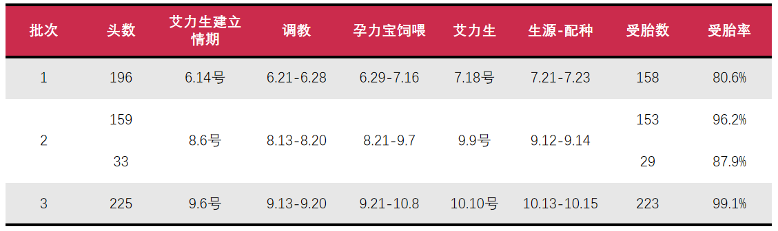 本场从2018年开始探索实施批次化生产,结合艾力生进行配种前保健,产仔情况和产房成活率均明显提升。