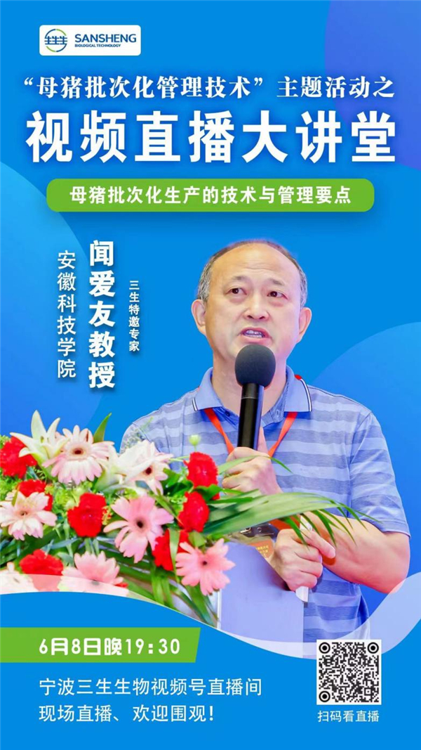 6月8日,由宁波三生生物科技股份有限公司独家冠名支持的“母猪批次化管理技术”主题活动之视频直播大讲堂活动如期举行。本次直播邀请到了安徽科技学院闻爱友教授,闻教授围绕《母猪批次化生产的技术和管理要点》这一主题进行了讨论与分享,全面解析了母猪批次化生产中的技术要点和管理要点,本篇带您回顾闻教授的精彩观点。