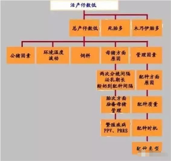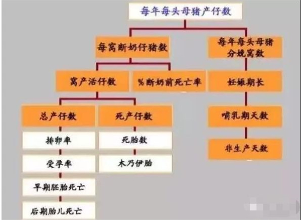 衡量母猪群繁殖性能最常用的指标是“断奶仔猪数/母猪/年”(PSY)。这个指标又是由“分娩窝数/母猪/年”和“断奶仔猪数/窝”两个指标所决定,这两个指标是同等重要的(图1)。许多因素会影响活产仔数(图2).