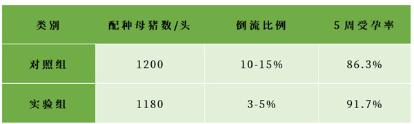 由下表可知,按照流水线输精模式的母猪精液倒流比例由10%-15%下降至3%-5%,下降比例超过10%,5周受孕率由86.3%提升至91.7%,受孕率提高5.4%。