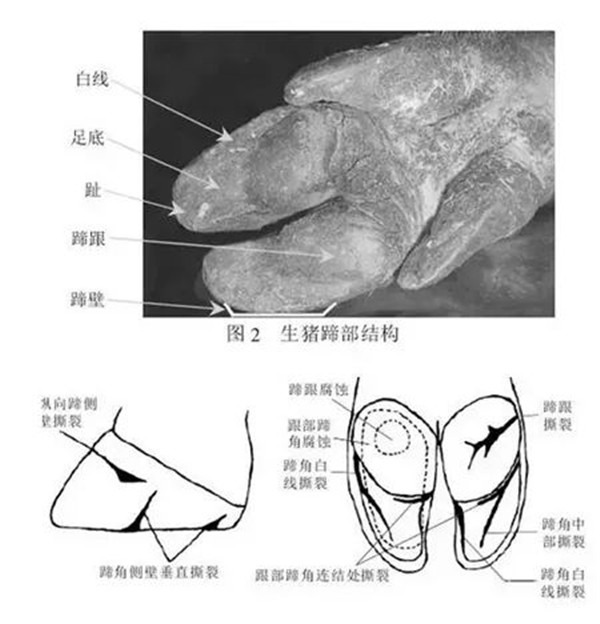 淘汰种猪的重要因素之一,最近有人问笔者,母猪蹄部起脓包,怎么处理?今天就为大家整理出来母猪肢蹄病的防治方法。如图中,猪肢蹄病一般会发生哪些病变,先来了解一下猪的蹄部结构。