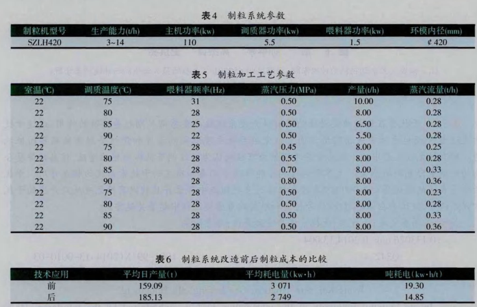 表4制粒系统参数表5制粒加工工艺参数表6制粒系统改造前后制粒成本的比较