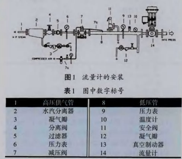 为了精确控制蒸汽的质量和添加量,本研究在山东龙盛农牧集团制粒车间实施,在其先进制粒系统的基础上,对其进行了改造,安装了蒸汽流量计,并使用数显式水分测试仪(SH-10A)和数显式记忆温度计(TES-1307 K/J)来检测蒸汽质量。蒸汽流量计的安装位置见图1,图中数字标号详细见表1。