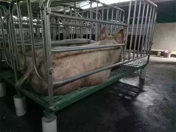 此方法直接江限位栏固定在复合漏粪板上,保持母猪位干燥,但造价成本高。