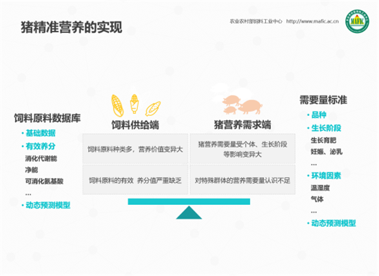 实现猪的精准营养,满足饲料供给端与猪营养需求端的平衡,是猪业养殖亟待解决的问题。当前猪只的营养需求千差万别,受到个体品种、生长阶段的多重影响,而很多养殖户对特殊群体的营养需求量认识不足,是导致当前猪只精准营养难以实现的瓶颈。而通过人工智能设备接通并整合饲料原料数据库之后,FeedSaaS数据平台就可以通过动态分析系统了解到最新的猪只营养需求量,可以实时、高效地更新营养方案、调配营养配方,达到真正意义上的精准营养饲喂。因此,从某种意义上来说,人工智能