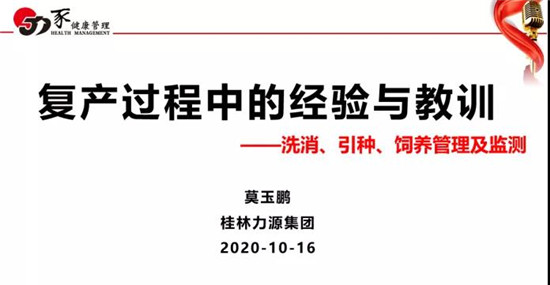 二、复产过程中的经验与教训-洗消、引种、饲养管理及监测,莫玉鹏,广西力源集团