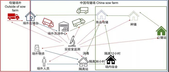 洗消中心、后备母猪来源和外部出猪台是感染非瘟的最重要风险因素。
