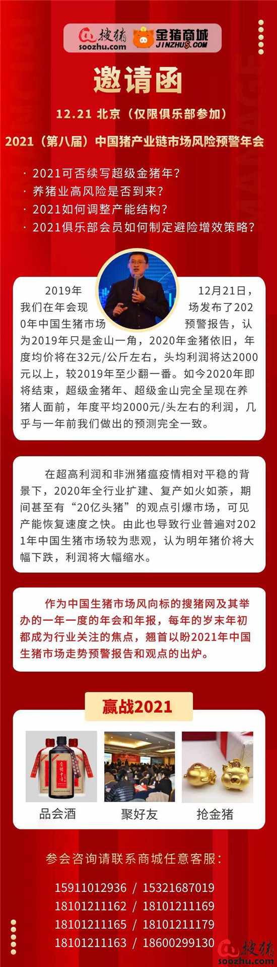 作为中国生猪市场风向标的搜猪网及其举办的一年一度的年会和年报,每年的岁末年初都成为行业关注的焦点,翘首以盼2021年中国生猪市场走势预警报告和观点的出炉!