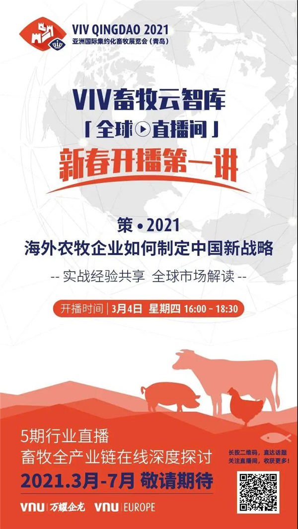 VIV QINGDAO 2021亚洲国际集约化畜牧展览会(青岛)将在2020基础上持续加强“云”平台构建,将在3-7月重点策划5期高质量国际性会议直播。围绕“贸易、