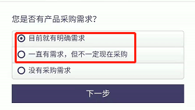 并在问卷部分“您是否有产品采购需求”勾选“有需求”