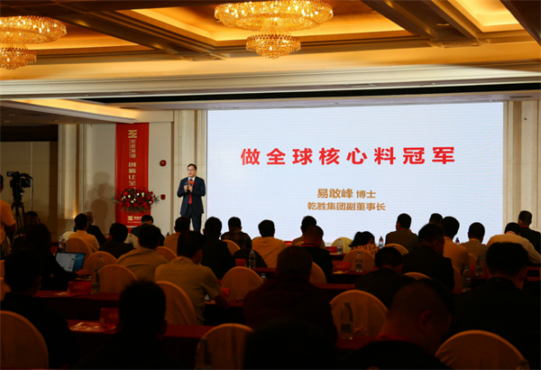 乾胜集团廖炎福总裁对乾胜事业充满了信心,他在《放飞梦想 成就事业新高度》报告中讲到:当前正处在百年未有之大变局的时代背景下,农牧行业周期迅速变化,饲料核心料领域正迎来科技创新的爆发期,市场优势、政策优势、产业优势、无抗替抗加速核心饲料红利期到来,市场快速增长的前景明确。时代赋予大机遇,乾胜事业大有可为,我们要拥抱乾胜成就大梦想。