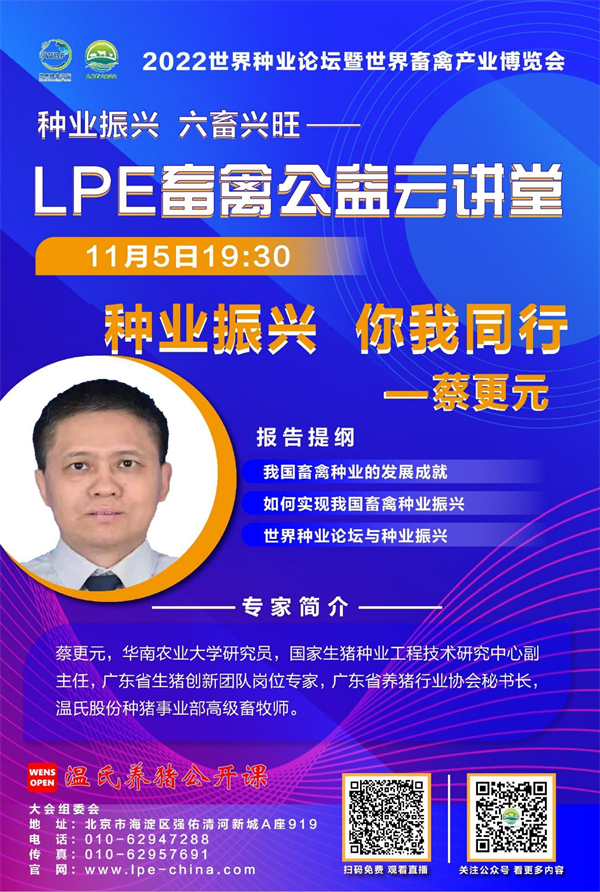 “LPE畜禽公益云讲堂”是由2022世界种业论坛暨世界畜禽产业