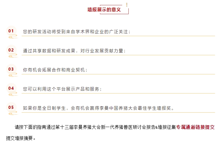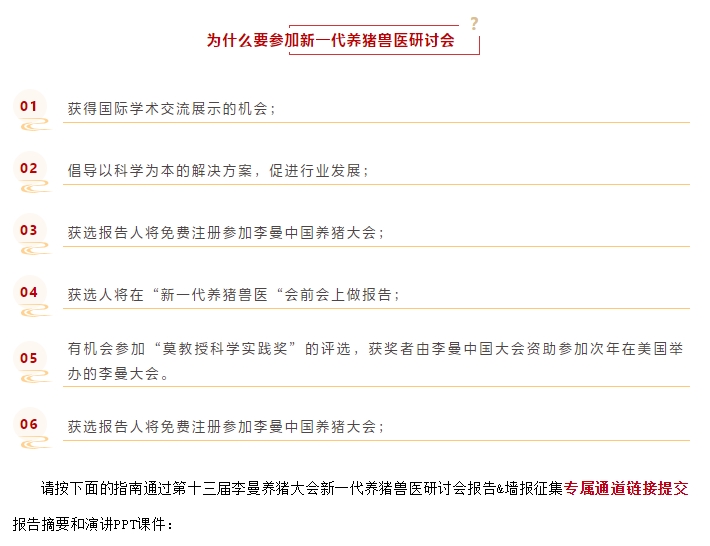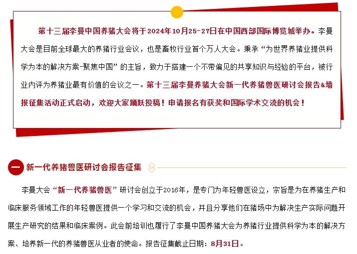 关于第十三届李曼中国养猪大会新一代养猪兽医研讨会报告&墙报征集活动的通知
