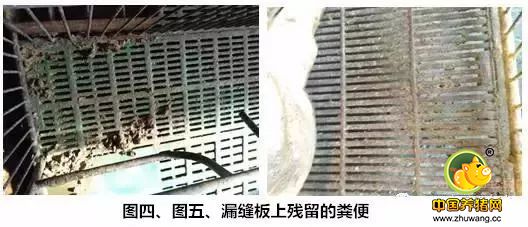 图一、二、这些产床平时只刮母猪粪便,仔猪粪便很少刮粪,不勤刮母猪粪便,更不用说扫母猪漏缝里面的粪便了,母猪拉的粪便被母猪睡在底下时间长了,因为母猪是有体温的动物,粪便的水分会被母猪的体温控干,就会造成母猪粪便变干、变硬,刮不干净,扫不动,造成空栏消毒的困难。