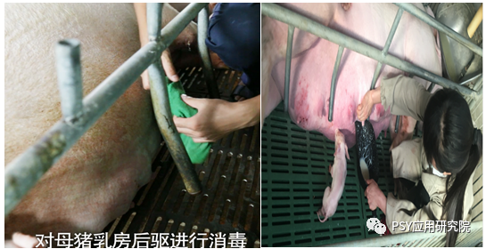 调栏,调大的仔猪过来供乳房,将乳房吸通。