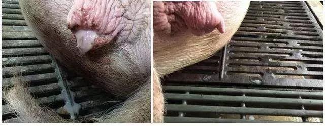 多是由急性子宫内膜炎转化而来,患病母猪并无明显全身症状,但是多数病猪躺卧的时候会有灰白色或灰黄色黏液或脓性渗出物从阴门排出,每次的排量超过15毫升,并且发情错后或不发情。