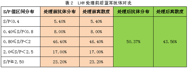 、约2万头母猪的田间试验,我们证实LKW对实际生产中蓝耳病毒活疫苗(含经典株及变异株)的免疫效果有积极的作用,见表2。