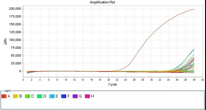 图2 检测结果出现大量的弱阳性扩增翘尾