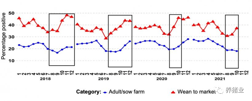 的样品高20-30个百分点(图一)。此外,SDRS的数据报告称,生长育肥猪PRRSV PCR阳性率的季节性高峰先于母电子游艺网站