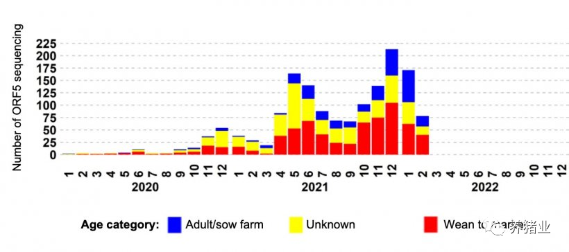 回到L1Cv的例子,用美国兽医诊断实验室的数据总结的流行病学曲线表明3波检测,其中第一波主要由生长肥育猪的检测驱动。第二波有更多的母电子游艺网站