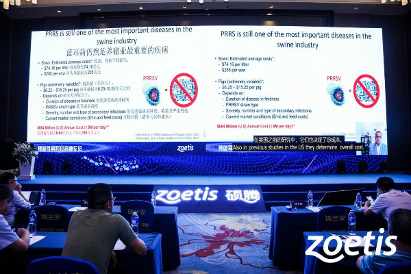 参会嘉宾:中国农业大学动物医学院副教授/博导周磊;美国明尼苏达州圣彼得猪兽医中心兽医博士/理学硕士Paul Yeske;中国农业科学院上海兽医所、国家生猪产业技术体系疫病控制岗位专家童光志;硕腾猪业务团队技术总监王科文、华南农业大学兽医学院博士、副教授黄毓茂;畜禽全球商业发展部、硕腾猪业务全球技术总监Jose Angulo;北京二商肉类食品集团有限公司养殖事业部技术总监李延明;PIC中国健康保障经理夏天以及各个合作企业代表、生产经销商、媒体等300余人参会。