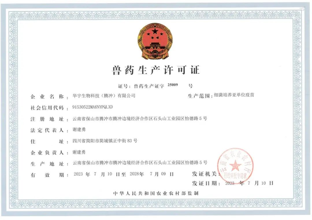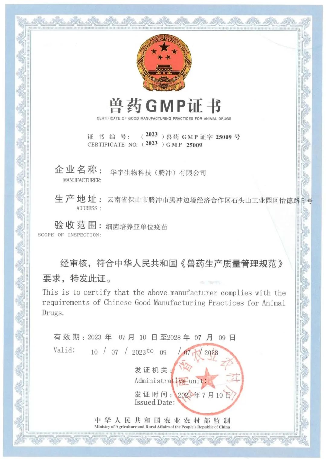 新的里程 | 华宇生物细菌培养亚单位疫苗生产线顺利通过GMP验收 取得兽药生产许可证 并成为口蹄疫疫苗指定生产企业