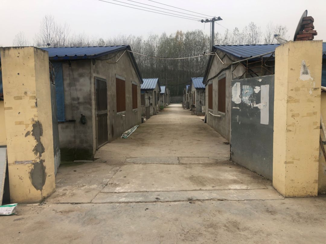 农场坐落在村庄边缘,生产区前面是吴元朝先生的别墅,后面背靠着小山丘,再前面不远处有一清澈流淌的小河,依山傍水,景色怡人。简单寒暄后来到生产区门口套上鞋套,进入门卫消毒通道喷雾消毒三分钟、消毒液洗手后进入生产区。
