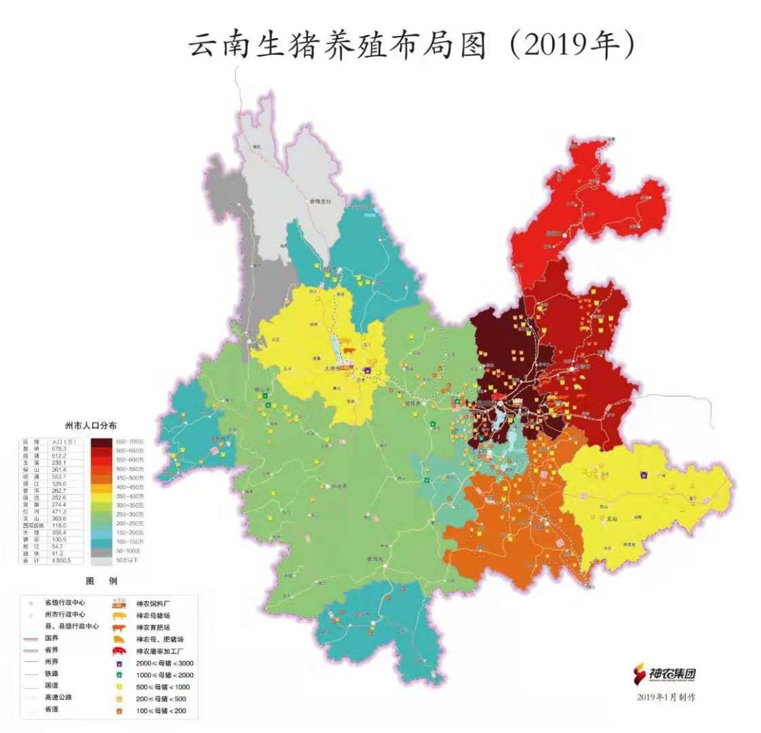 图1 云南生猪养殖布局图(2019年)