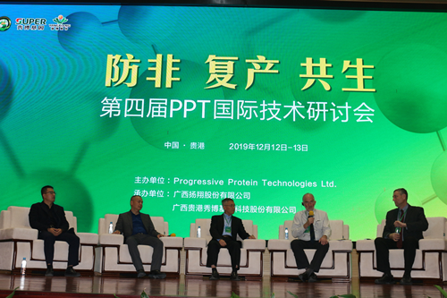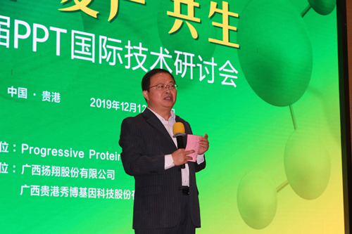 技术研讨会(下文简称“PITC”),于广西贵港隆重召开。加拿大PPT公司(Progressive Protein Technologies ltd.)主办,具有高度责任感的广西扬翔股份有限公司(下文简称“扬翔股份”)、广西贵港秀博基因科技股份有限公司(下文简称“秀博基因”共同承办,这场别开生面的国际性会议吸引了350余名参会嘉宾。国际养猪趋势与复产案例、国内扬翔铁桶防非与复产实操为养猪业提供了解决方案,有利于养猪业建立共生关系,实现可持续化养猪终极目标。正如会议现场的国际专家所说:“要想富一年,种谷;要想富一年,养猪;要想富一百年,可持续养猪。”