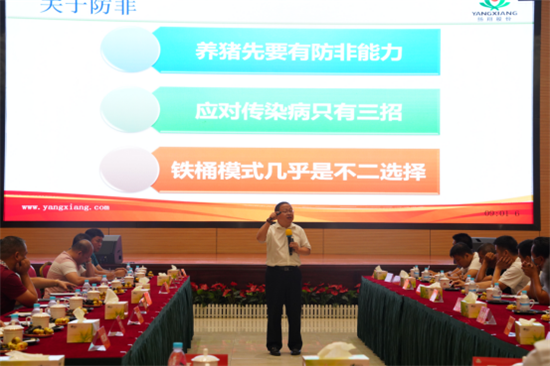 ▲扬翔股份副总裁、服务养猪事业部总裁高远飞做行业形势分析报告
