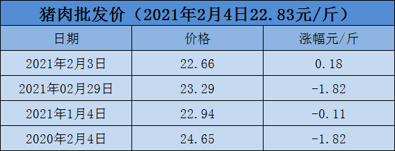 相较昨日(2021年02月03日)22.66元/斤,价格上涨0.18元/斤;