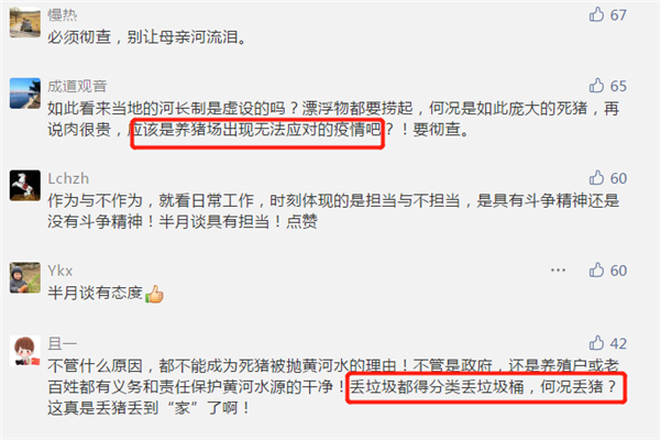 近日频频爆出不明死猪随意丢弃的新闻,弄得人心惶惶。“内行看门道,外行看热闹”,猪事频发,让人不禁担心起现在养猪行业的前景。就前几日黄河大堤出现大量死猪,现场拍摄的图片触目惊心,现在本来就存在非瘟零星发现的情况,不免让人担心现在生猪的质量问题,这点我们从消费者对这件事的留言可以看出。