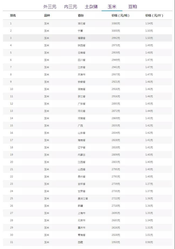 2021年03月31日(星期三),今日全国玉米均价为2872元/吨,报价较昨日上涨了16元/吨,环比下跌0.73%,同比上涨44.32%。