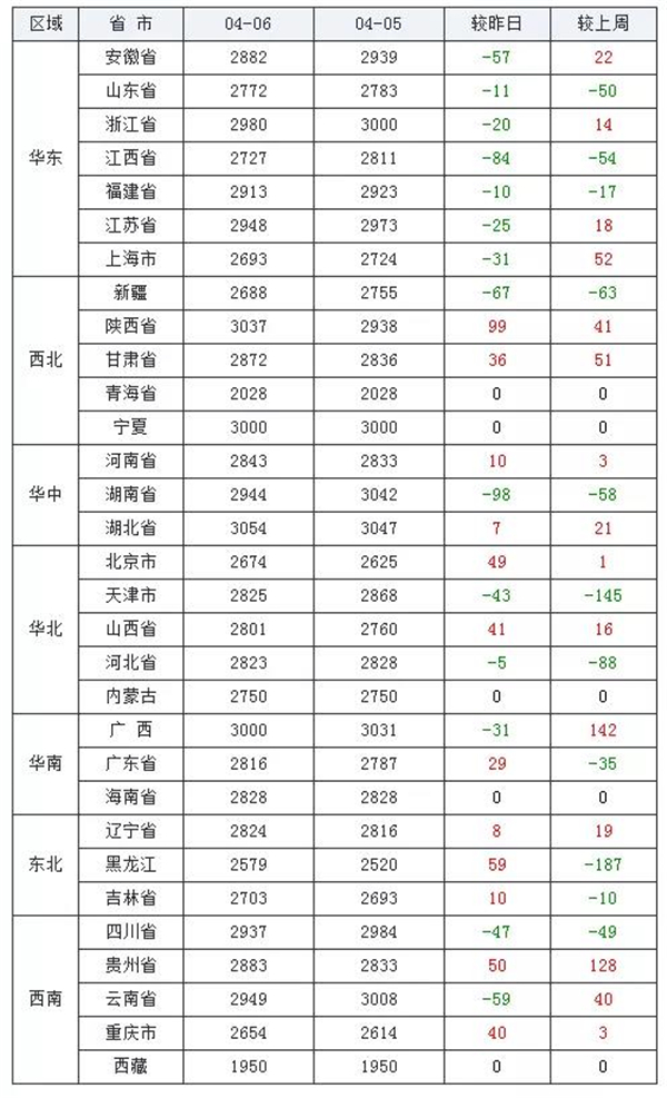 上涨地区(12个):陕西省、甘肃省、河南省、湖北省、北京市、山西省、广东省、辽宁省、黑龙江省、吉林省、贵州省、重庆市;
