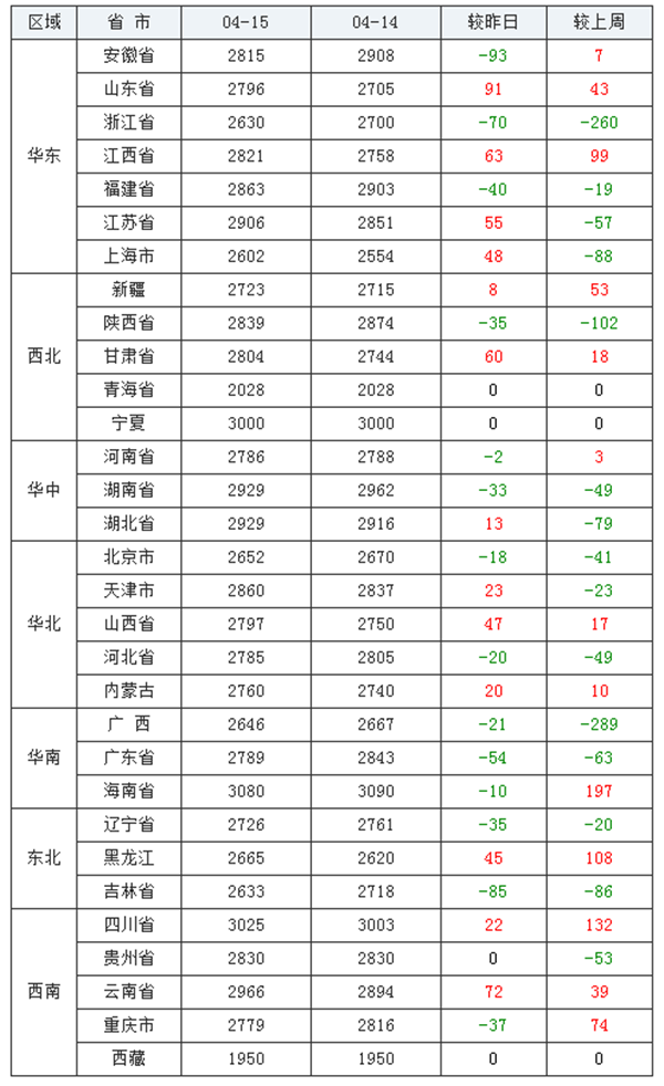 上涨地区(13个):山东省、江西省、江苏省、上海市、新疆维吾尔自治区、甘肃省、湖北省、天津市、山西省、内蒙古自治区、黑龙江省、四川省、云南省;