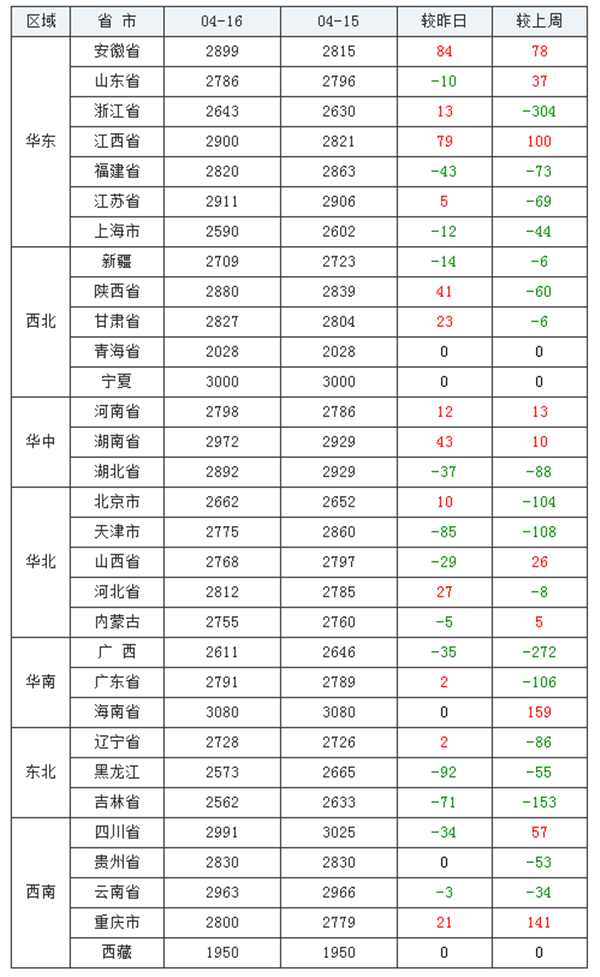 华南地区:海南省3080元/吨;