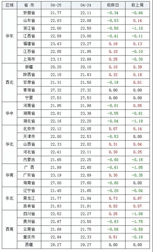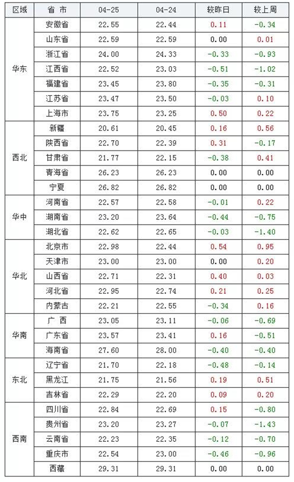 外三元排行后三:青海省20.40元/公斤、新疆维吾尔自治区20.94元/公斤、宁夏回族自治区21.49元/公斤。