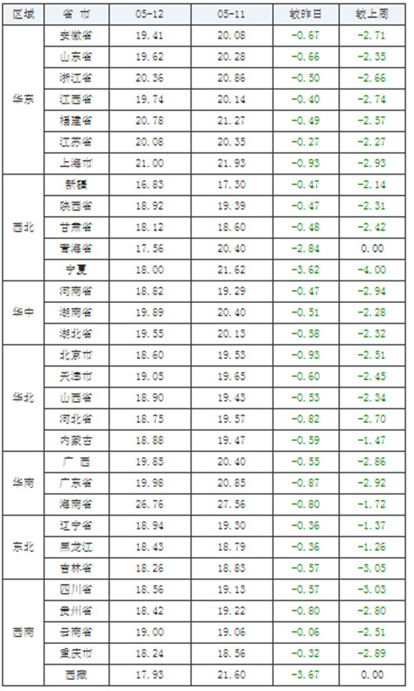 05月12日-全国外三元生猪价格走势图及涨跌表