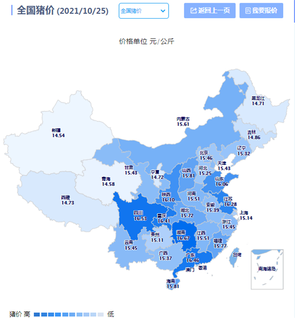 2021年10月25日(星期一),据猪价系统数据监测: